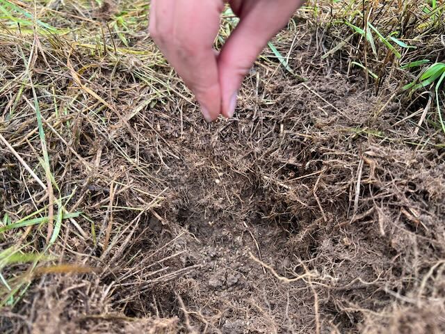 Die zweite Mahd einschließlich Abharkens erfolgte Mitte September sowohl innerhalb als auch außerhalb der Zäune. Auf der rechten Einsaatfläche wurden zusätzlich heimische Wildstauden gepflanzt, da sich die Ansaat dort nur unzureichend entwickelt hat. Darüber hinaus wurde im westlichen Bereich der Fläche Klappertopf eingesät, um das Graswachstum zurückzudrängen. Wir sind gespannt.